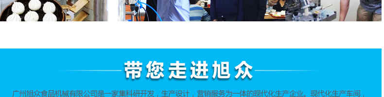 廣州旭眾食品機(jī)械有限公司是一家集科研開(kāi)發(fā),生產(chǎn)設(shè)計(jì),營(yíng)銷服務(wù)為一體的現(xiàn)代化生產(chǎn)企業(yè)。現(xiàn)代化生產(chǎn)車間,精湛制造技術(shù),所產(chǎn)機(jī)械歷經(jīng)市場(chǎng)重重考驗(yàn),不斷贏得海內(nèi)外客戶的贊譽(yù)。