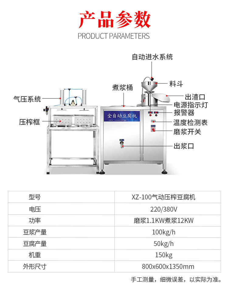 XZ-100型全自動(dòng)豆腐機(jī),商用全自動(dòng)氣動(dòng)壓榨豆腐機(jī)氣動(dòng)壓榨,分離漿水,不傷豆腐,定型美觀。