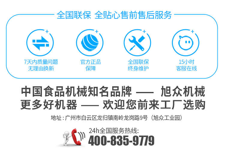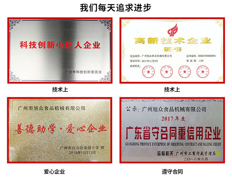 廣州旭眾食品機(jī)械有限公司是一家集科研開(kāi)發(fā),生產(chǎn)設(shè)計(jì),營(yíng)銷(xiāo)服務(wù)為一體的現(xiàn)代化生產(chǎn)企業(yè)?,F(xiàn)代化生產(chǎn)車(chē)間,精湛制造技術(shù),所產(chǎn)機(jī)械歷經(jīng)市場(chǎng)重重考驗(yàn),不斷贏得海內(nèi)外客戶(hù)的贊譽(yù)。