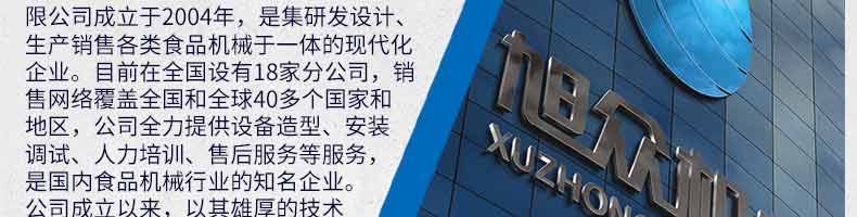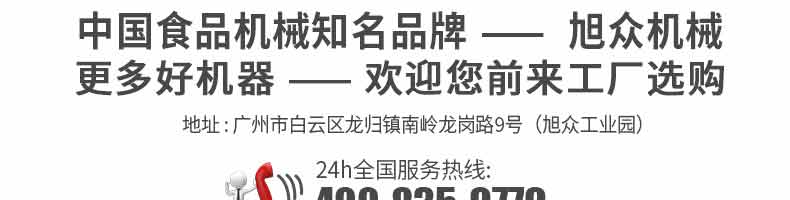 廣州旭眾食品機(jī)械有限公司是一家集科研開發(fā),生產(chǎn)設(shè)計,營銷服務(wù)為一體的現(xiàn)代化生產(chǎn)企業(yè)?,F(xiàn)代化生產(chǎn)車間,精湛制造技術(shù),所產(chǎn)機(jī)械歷經(jīng)市場重重考驗,不斷贏得海內(nèi)外客戶的贊譽(yù)。