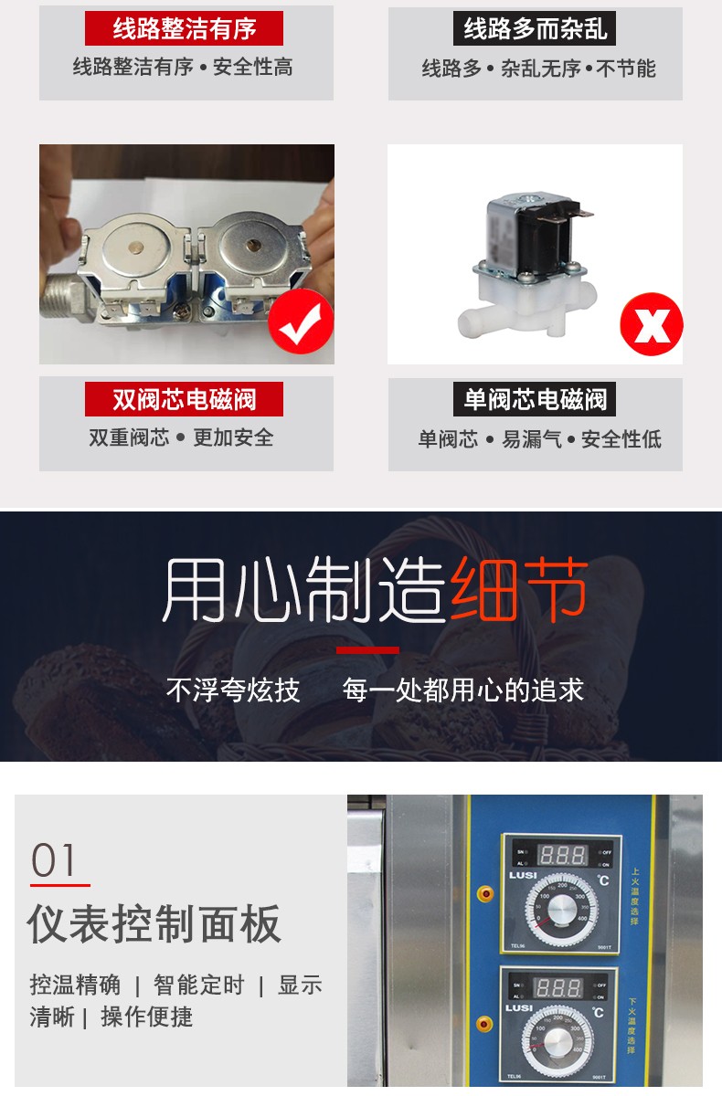 三層六盤儀表版燃氣烤箱,
