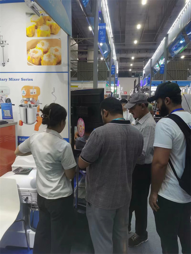 展臺(tái)上整齊地?cái)[放著各種食品加工機(jī)械,從冰淇淋機(jī)包子機(jī)和面機(jī)、攪拌機(jī)等,每一樣產(chǎn)品都展示著公司的技術(shù)實(shí)力和創(chuàng)新能力。